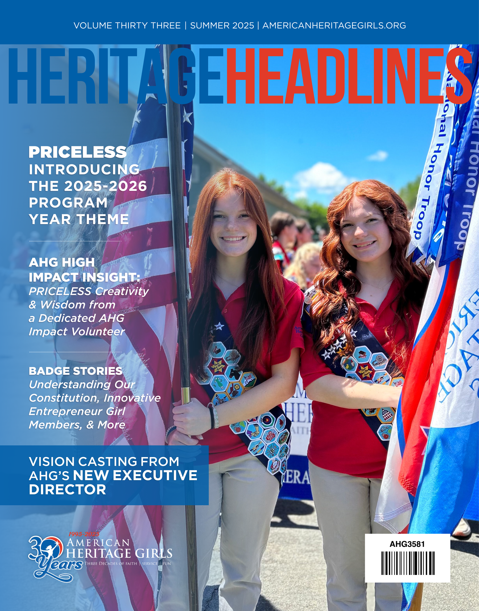 Heritage Headlines is a quarterly magazine publication of American Heritage Girls, Inc. This issue of Heritage Headlines celebrates the 2025-2026 Program Year Theme: PRICELESS. Inside these pages, you’ll read stories of Troop fun, community service, and spotlights on an AHG Alumna, Staff Member, a Charter Organization, and much more!