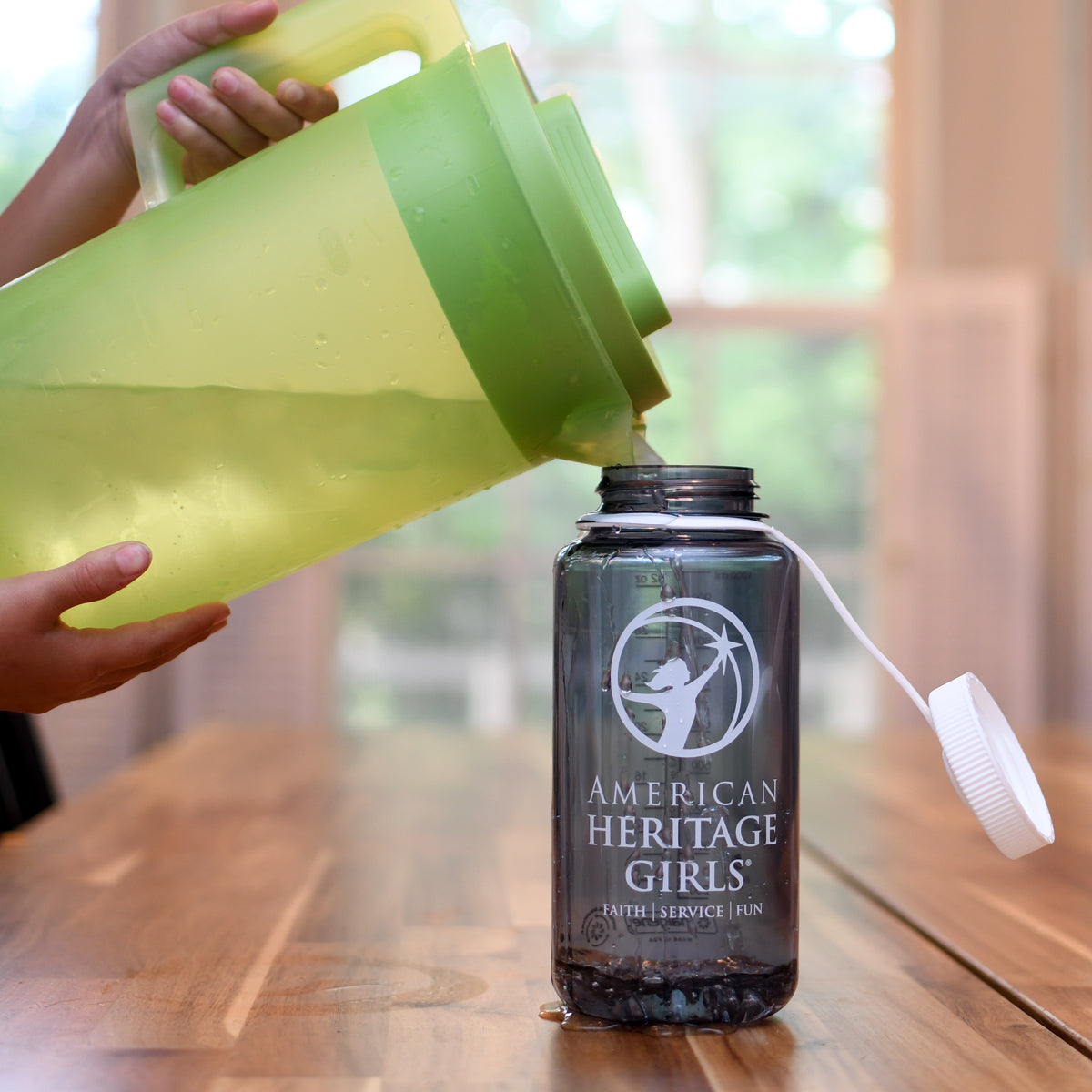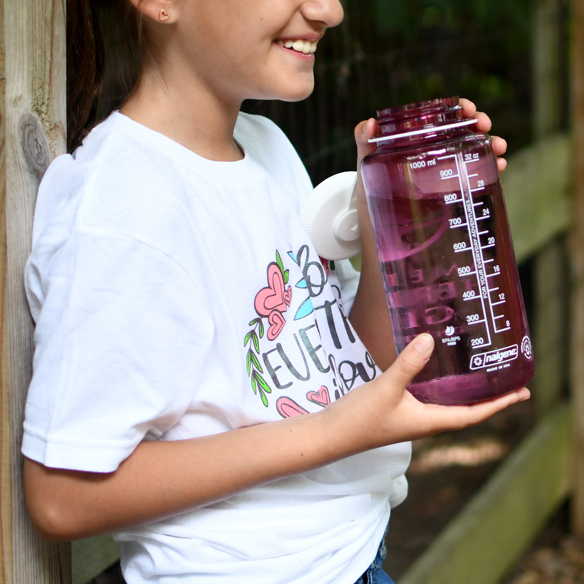 This Nalgene water bottle is the perfect hydration companion for any active lifestyle. It features a wide mouth opening-great for adding ice cubes for colder beverages-and "oz." listing along the side to keep track of your hydration. Made to last a lifetime, BPA/BPS free, and dishwasher safe. Available in cherry blossom, cerulean, and smoke gray.