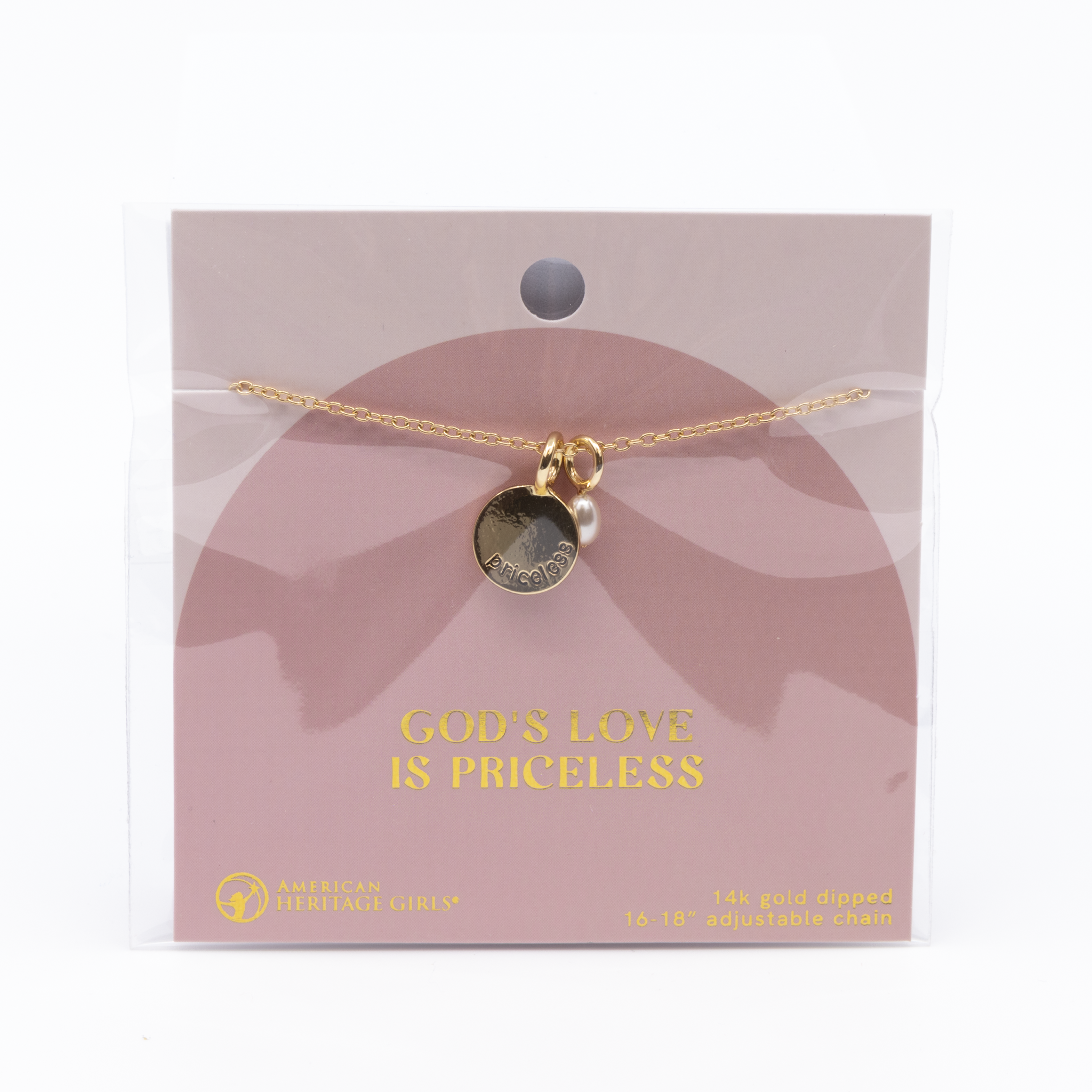 This AHG PRICELESS Pearl Necklace features a 14k gold-dipped finish and an adjustable chain ranging from 16 to 18 inches, allowing for a perfect fit. Its elegant design combines a genuine freshwater pearl with durable gold plating, making it a timeless accessory suitable for both everyday wear and special occasions.