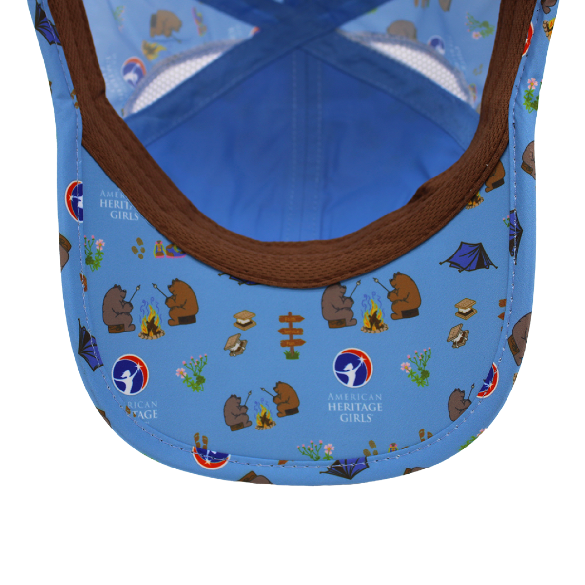 Blue cap with 'American Heritage Girls' logo on a white background