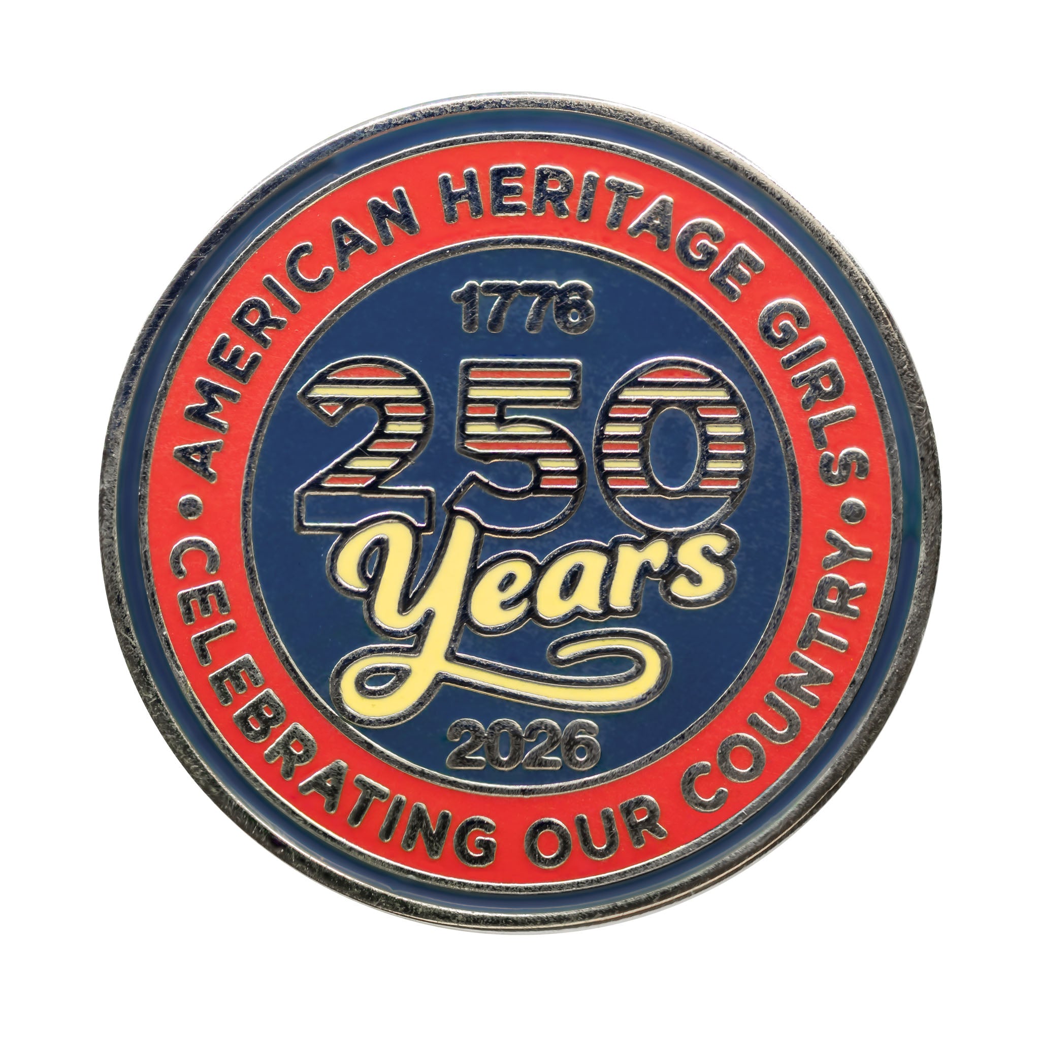 America only turns 250 once! Created especially for the United States Semiquincentennial in 2026, this pin is sure to be a favorite of both girls and adults. Don't miss the chance to commemorate this pivotal moment in our country's history.