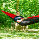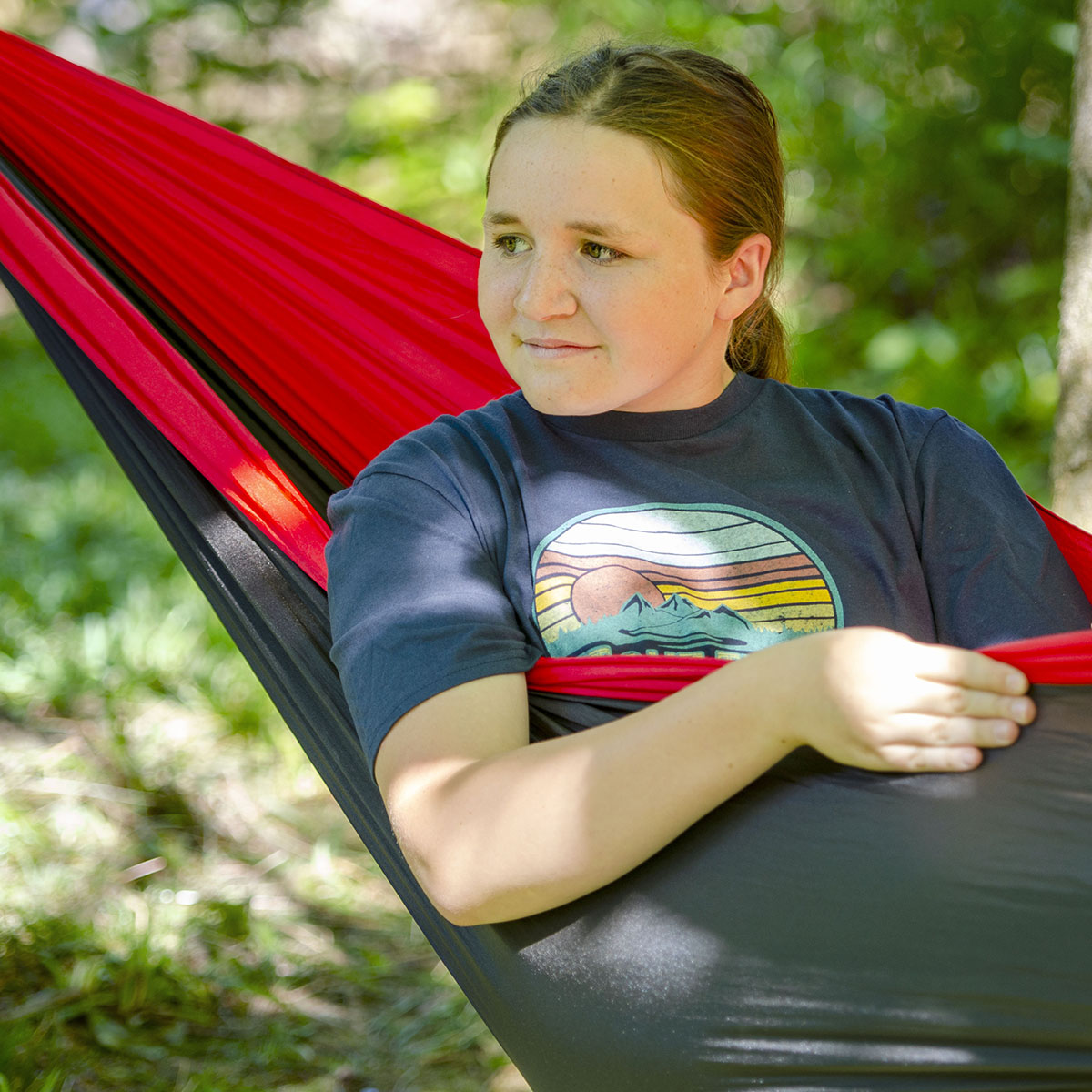 This AHG Hammock is a single size hammock perfect for all your AHG outdoor adventures. Made of blue/black 210T Nylon that is durable, highly breathable and will wick moisture away to keep you dry and comfortable. Hangs easily with enclosed ropes and provides you with a great opportunity to practice your AHG knot tying skills.