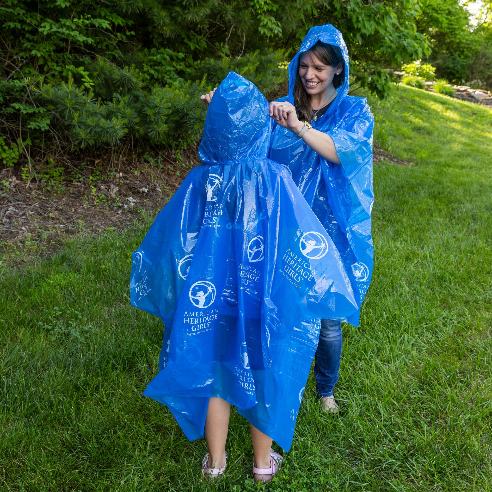 Don't let the rain wash away your outdoor fun! Stay dry and comfortable when a surprise shower strikes with the AHG Rain Poncho. Makes a great gift for American Heritage Girls working on their hiking and camping badges! This rain poncho features an oversized hood and an adjustable drawstring. One size fits all. Made from polyethylene.