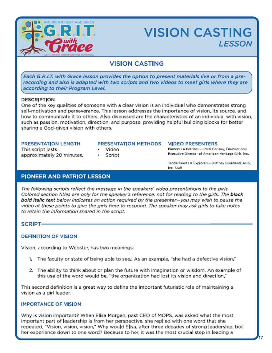 Event Guide: Each GRIT with Grace digital download includes a complete Event Guide, which explains the ins and outs of the GRIT with Grace curriculum and how to hold a successful event, with graphics, event logistics, and a breakdown of the curriculum provided for each session.